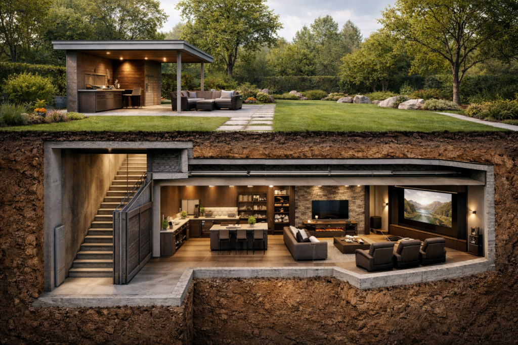 Discreet underground retreat designed for controlled access and peace of mind
